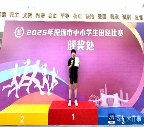 南都記者獲悉,近日, 深圳市中小學生田徑比賽在深圳市第七高級中學激烈上演。在初中男子400米決賽中,坪山實驗學校石文建同學以50.76秒優異成績勇奪桂冠,這一成績是賽事近三年來的最佳表現,再次刷新坪山學子在該項目上的歷史紀錄!