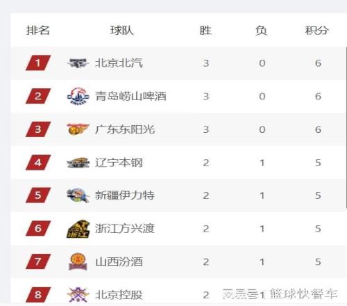 而四冠王遼寧隊(duì),他們上一輪比賽雖然輸給北京隊(duì),球隊(duì)的戰(zhàn)績(jī)變成2勝1負(fù),不過,球隊(duì)目前還是排在積分榜前四名。上一輪比賽,他們位居積分榜第三,不過,這一輪比賽過后,他們的排名被廣東隊(duì)反超了。新疆隊(duì)則排在積分榜第5名,而衛(wèi)冕冠軍廣廈隊(duì),他們?cè)谏弦惠啽苊膺B敗后,球隊(duì)的戰(zhàn)績(jī)也變成2勝1負(fù),目前暫居積分榜第6位。山西隊(duì)則位居第7,第8名則屬于北控隊(duì)。