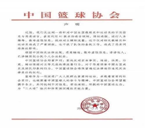 利用AI造謠“中國女籃”,兩男子被公安機關刑拘