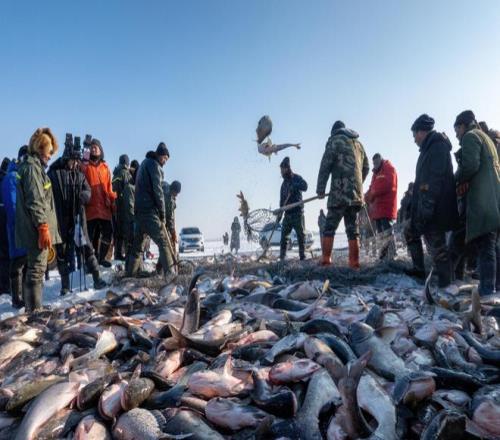 2024年1月23日,吉林查干湖:千米大網合圍魚群,古老而壯觀的冬捕活動。圖/IC photo