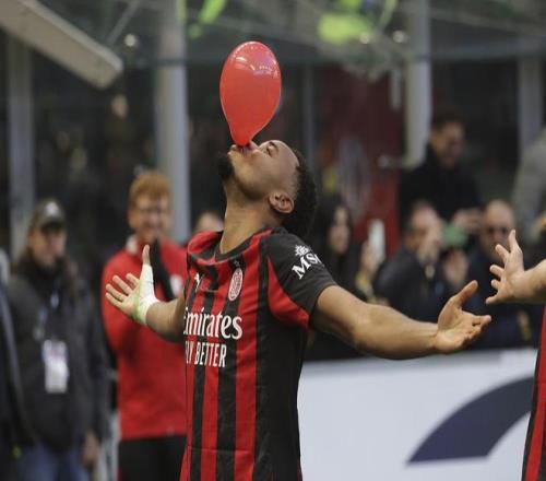 恩昆庫(kù)打入加盟米蘭的聯(lián)賽首球,進(jìn)球后展示了標(biāo)志性的吹氣球慶祝。