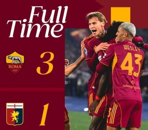 羅馬是處于積分榜前四的球隊,雖然上一場不敵尤文,但是本輪回到主場對陣熱那亞還是展現了強大的實力,上半場就連入三球,提前殺死了比賽,馬蒂亞斯-蘇萊、科內、埃文-弗格森先后建功,第87分鐘埃哈托爾幫助熱那亞追回一球,最終羅馬3-1全取三分,收獲賽季第11場勝利,以33分繼續力壓32分的尤文暫列第4名。