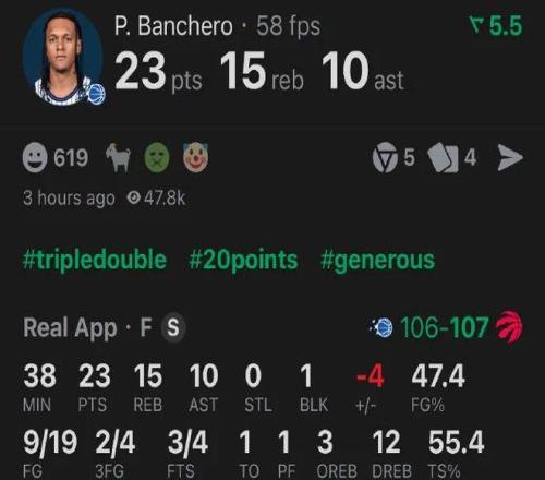 班凱羅又一次打出三雙,全場貢獻(xiàn)23分15籃板10助攻。