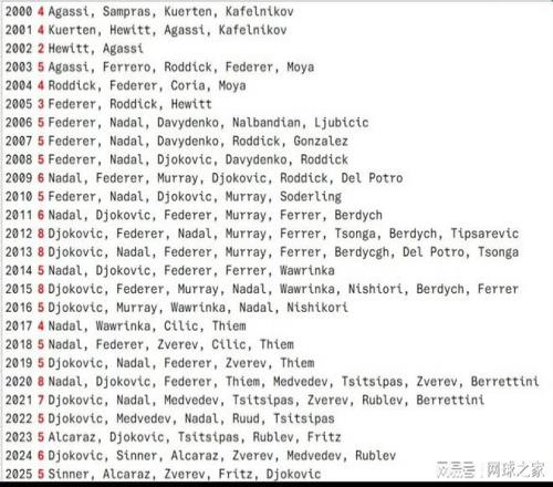 今年是2025年的最后一天,回顧這一年,有新人進入了世界前十,也有人從賽季開始到結束都矗立在前十行列。那么回顧近二十年來的世界前十,誰又是最穩定的球員呢?毫無疑問,費德勒、納達爾、德約科維奇成為二十年來最穩定球員!