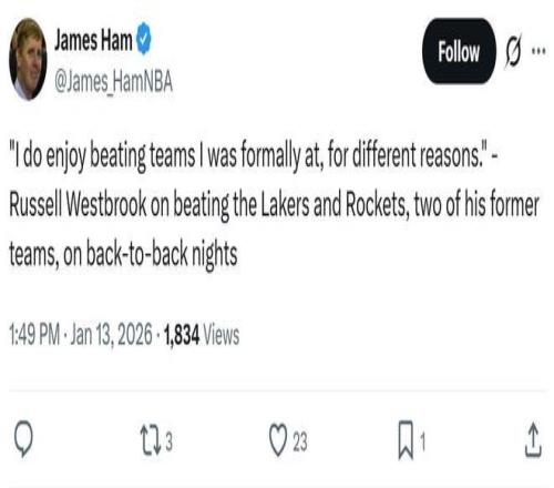 而這一切恰恰是從威少昔日加盟湖人隊(duì)鬧得不歡而散,徹底打丟巨星身價(jià)說起,也讓他在本場手刃舊主后的一番發(fā)聲變得耐人尋味起來。