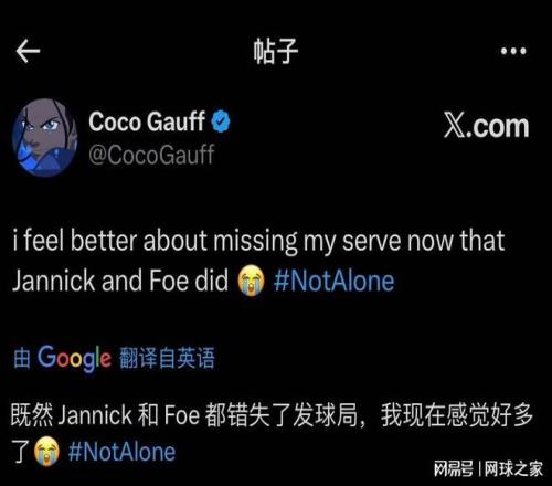 賽后,高芙還在社交媒體上連發(fā)兩條一球制勝的博文打趣自己的表現(xiàn),“既然辛納和蒂亞福都是發(fā)球失誤出局,那我感覺好受多了!”在賽事落幕后,她又發(fā)文表示,“精彩的賽事!一開始我就說,我希望業(yè)余球員奪冠!恭喜喬丹,太酷了!”