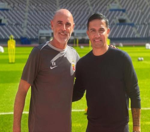 穆斯卡特率海港隊在多哈展開集訓,同為澳大利亞前國腳的卡希爾前去探班。
