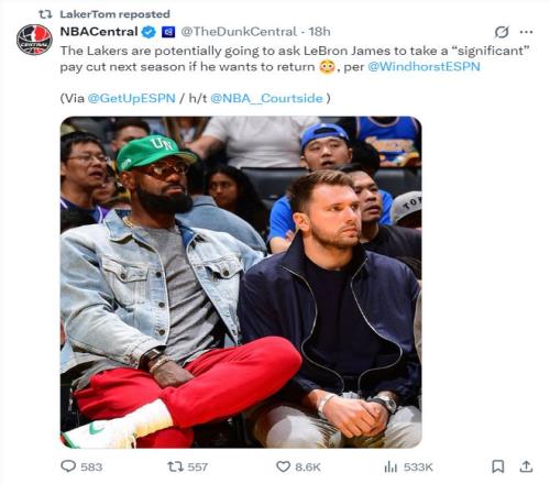 1月30日凌晨,ESPN記者布萊恩-文霍斯特透露,在今夏湖人會(huì)要求勒布朗-詹姆斯降薪,而且是大幅度的降薪,只要詹姆斯還想在湖人繼續(xù)征戰(zhàn)他就不得不接受這種程度的降薪。