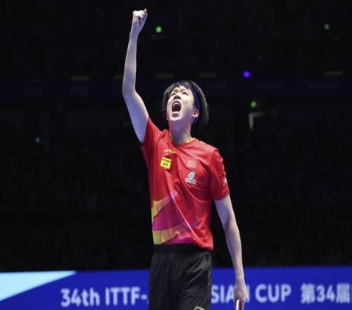 2025年2月23日,中國選手王楚欽在廣東深圳舉行的第34屆國際乒聯-亞乒聯盟亞洲杯男子單打決賽中。