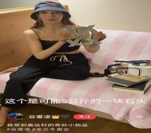 2月5日,谷愛凌在社交平臺分享帶到奧運村的奇妙小物品。其中,有一塊5公斤重的石頭,這是谷愛凌在今年1月的瑞士萊克斯世界杯上得到的冠軍獎杯,因為沒有時間回家就一直帶著。