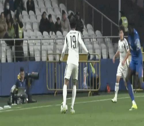 開場(chǎng)20秒,藤尾翔太突入禁區(qū)被金順凱撞倒,主裁判判罰點(diǎn)球并且向金順凱出示黃牌,相馬勇紀(jì)主罰點(diǎn)球破門,0比1!
