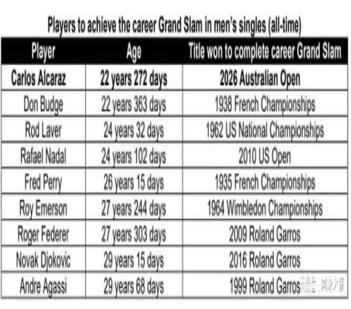 在以6-2搶下第一盤之后,38歲的德約科維奇被22歲的阿爾卡拉斯連扳三盤逆轉。德約科維奇25冠夢碎的同時,又催生了一項新的歷史紀錄——阿爾卡拉斯成為有史以來最年輕的全滿貫得主。