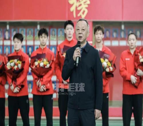 國家體育總局乒羽中心主任、黨委書記高元義在講話中表示,在這一榮耀時刻,希望全體運動員和教練員不忘初心,刻苦訓練、頑強拼搏,在國際賽場上為國爭光。同時,他勉勵大家常懷感恩之心,感恩祖國培養、時代機遇以及父母、教練和所有默默奉獻的工作人員。高元義指出,過去一年,在總局黨組的堅強領導下,國家羽毛球隊在世界賽場屢創佳績,這些榮譽凝聚著全體人員的共同努力。新的一年,乒羽中心黨委將繼續以高質量黨建引領事業發展,全力做好服務保障工作,助力中國羽毛球隊再創輝煌。