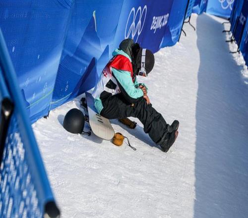 2022年北京冬奧會,蔡雪桐結(jié)束比賽后獨自一人坐在通道上。