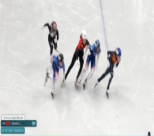 另外兩位中國選手王欣然在第一組出戰(zhàn),但由于在最后一個(gè)彎道犯規(guī)被取消成績。張楚桐在第三組登場,這組比賽前兩次起跑均因?yàn)樵诘谝粋€(gè)彎道張楚桐與美國選手?jǐn)D壓摔倒而重賽。第三次起跑時(shí),張楚桐因犯規(guī)被判取消比賽資格。