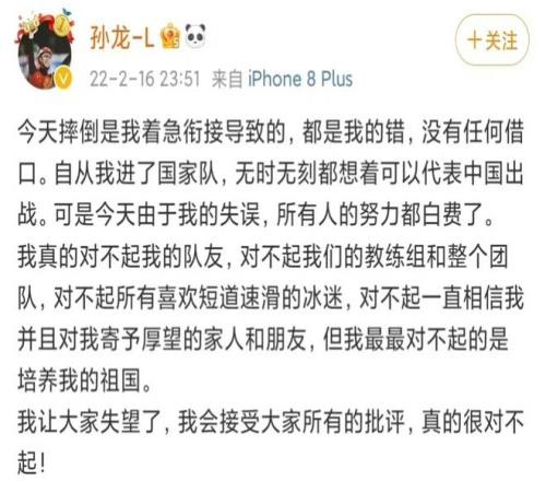 賽后,孫龍淚灑賽場,在個(gè)人社交媒體上連用六個(gè)"對(duì)不起"向國家和隊(duì)友致歉。這次失誤讓他陷入了職業(yè)生涯的低谷——經(jīng)驗(yàn)欠缺、心態(tài)不沉穩(wěn)、外界的質(zhì)疑聲鋪天蓋地而來......