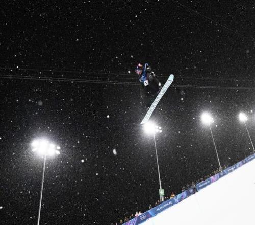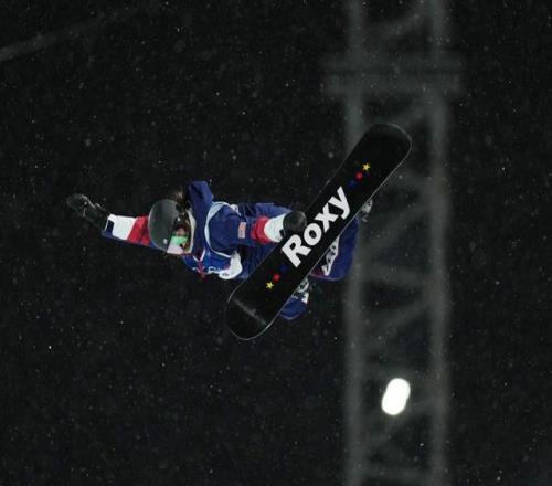 2月12日,美國選手克洛伊·金在米蘭冬奧會單板滑雪女子U型場地技巧決賽中。新華社記者 夏一方 攝
