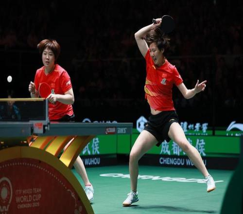 王曼昱/蒯曼在2025成都國(guó)際乒聯(lián)混團(tuán)世界杯比賽中。