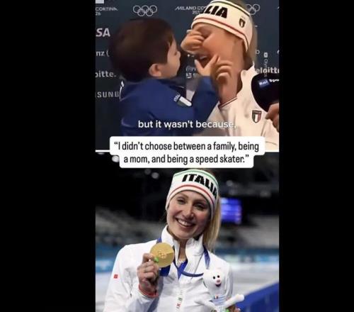 洛洛布里吉達賽后說,“我沒有在滑冰和做媽媽間做選擇”,就像她一邊接受采訪,一邊和兒子搞怪。