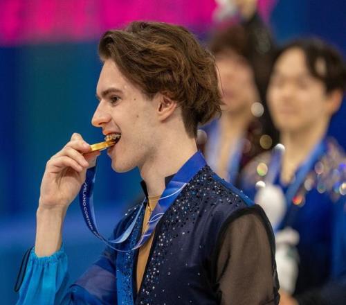 最后一組出場的6位選手都實力不凡,短節目第二名鍵山優真是北京冬奧會亞軍、三屆世錦賽銀牌得主,原本他是馬里寧最大的競爭對手。但他在自由滑中也失誤頻頻,僅僅名列第六,最后以總分280.06分再度收獲銀牌。前一組出場的日本選手佐藤駿則在最后時刻驚喜交加,發現自己竟然站上了領獎臺。
