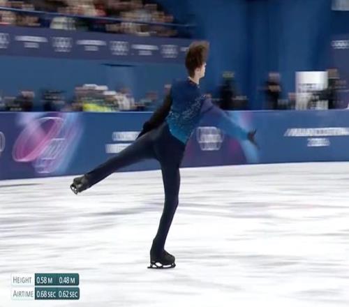 本屆奧運會花滑比賽直觀地呈現(xiàn)了起跳高度和滯空時間(左下角)