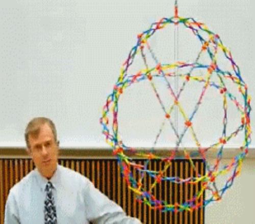 這是一個轉(zhuǎn)動慣量影響轉(zhuǎn)速的實驗演示。收緊玩具球讓質(zhì)量分布更靠近旋轉(zhuǎn)軸,因此轉(zhuǎn)動慣量減小,此時玩具旋轉(zhuǎn)的速度就變快了。| Physics Demos