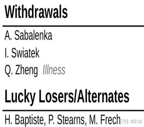 美國體育媒體《Sportskeeda》則從簽表角度分析,認為隨著世界第一薩巴倫卡和世界第二斯瓦泰克的缺席,本屆迪拜站本是鄭欽文沖擊首個1000賽冠軍的絕佳窗口,但身體的突然報警讓她錯失了寶貴搶分良機 。