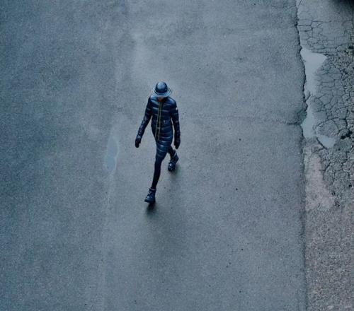 這套亮黑色羽絨服也是完全不走尋常路,沒有一般羽絨服的臃腫笨重,裁剪和質感都很高級。