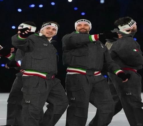 開幕式時,意大利隊員穿的是一套灰色混紡羊毛工裝夾克。