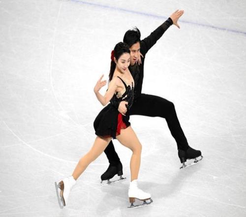 2月15日,隋文靜/韓聰(右)在雙人滑短節目比賽中。新華社記者 程敏 攝