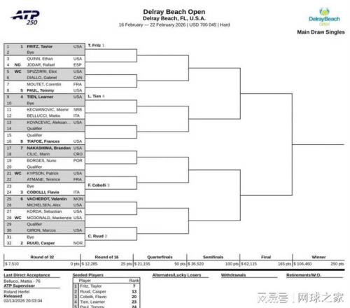 與此同時(shí),在本周進(jìn)行的級(jí)別最低的德拉海灘站,一眾美國(guó)球員可謂傾巢出動(dòng),包括弗里茨、保羅、勒納錢、蒂亞福等。首輪也有不少焦點(diǎn)對(duì)話,像前美網(wǎng)冠軍西里奇將對(duì)陣布蘭登中島,科達(dá)則迎戰(zhàn)持外卡參賽的布魯克斯比等等。另外,意大利人科波利、挪威一哥魯?shù)隆⑸虾4髱熧惞谲娡呱崃_、衛(wèi)冕冠軍凱茨瑪諾維奇也都聯(lián)袂出戰(zhàn)。