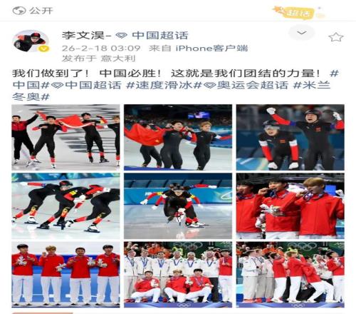 李文淏在社交平臺發文稱:“我們做到了!中國必勝!這就是我們團結的力量!”