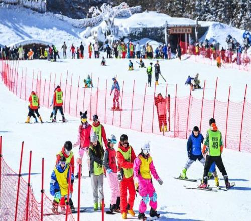 2月2日,在江西省宜春市銅鼓縣排埠鎮(zhèn)七星嶺滑雪場,參加冰雪冬令營的學(xué)生在教練的帶領(lǐng)下體驗冰雪運動。新華社發(fā)(周亮攝)