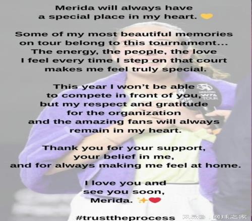 作為當前和伊埃拉、約維奇并駕齊驅的女網流量三小花之一,森梅茲當前在女網的人氣雖然比不上菲律賓姑娘伊埃拉那么火爆,但是她的比賽向來不缺人氣。去年森梅茲在梅里達挺進四強,今年發(fā)長文退賽不來了,讓這站賽事少了一些關注度和話題是必然的。