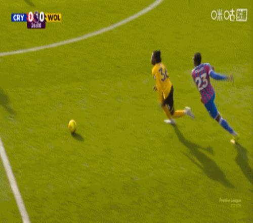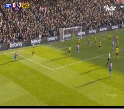 第90分鐘,蓋桑臨近比賽結束破門,水晶宮1-0狼隊