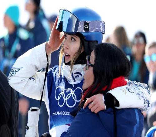 谷愛凌在場邊和母親谷燕擁抱的畫面,在三項比賽中都被現場的攝影記者記錄了下來
