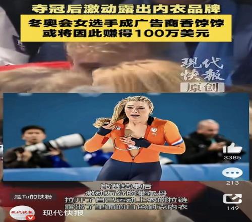 米蘭冬奧會上,荷蘭速滑名將尤塔·萊爾丹的一個自然舉動,意外引發體育營銷圈的廣泛討論。這位27歲的選手在打破奧運紀錄、奪得女子1000米速滑金牌后,情緒激動之下拉開國家隊贊助商FILA的橙色緊身服拉鏈,內里的耐克運動內衣意外入鏡,被鏡頭捕捉后迅速走紅全球。