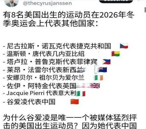 這次冬奧會,在美國出生但代表其他國家參賽也取得好成績的運動員有好幾個,包括馬薩諸塞州出生的佐伊.阿特金代表英國滑雪,密歇根出生的艾莉森·里德代表立陶宛滑冰。以及代表以色列參賽的埃德爾曼,但只有歸化中國的運動員遭受了比較多的網(wǎng)絡(luò)暴力,而谷愛凌是被網(wǎng)暴最多的。