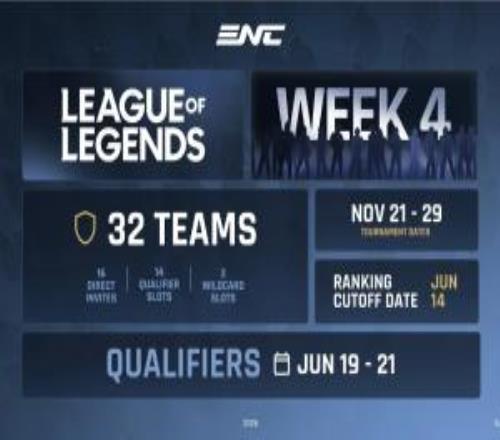 共有32支國家隊將參加2026 ENC的《英雄聯(lián)盟》項目。16支隊伍將通過新制定的ENC國家隊排名而被直接邀請。排名前8的隊伍將直接進入小組賽階段,而排名第9至16位的隊伍將從入圍賽階段開始。另外14支隊伍將通過各地區(qū)線上預(yù)選賽產(chǎn)生,最后2個名額通過外卡方式頒發(fā)。