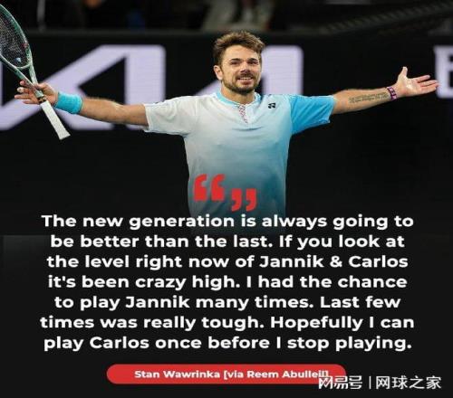 其它場次:前賽會冠軍、瑞士老將瓦林卡以7-5 6-3擊敗黎巴嫩球員哈桑,收獲開門紅。此役過后,瓦林卡還刷新了一項紀錄,這就是成為ATP歷史上年滿40歲之后,取得巡回賽勝場數(shù)最多的球員(10場)。賽后,四蛋在接受采訪時表示,希望在自己這個最后賽季里,能與世界第一阿爾卡拉斯交手,“新一代球員總是比上一代更強。看看現(xiàn)在揚尼克和卡洛斯的水平,簡直高得驚人。我有幸和揚尼克交手過很多次,最近幾次都非常艱難。希望在我退役之前還能和卡洛斯打一次?!?