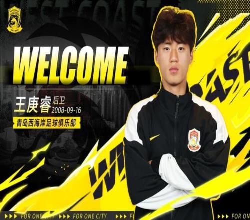 歡迎王庚睿加入青島西海岸隊!希望王庚睿盡快融入球隊,在青島這片足球熱土上追逐足球夢想,與球隊一同成長,為青島足球的未來貢獻青春力量!