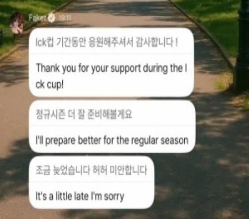 Faker粉絲頻道留言:謝謝大家LCK期間的支持,下賽季常規(guī)賽我會(huì)做更好的準(zhǔn)備