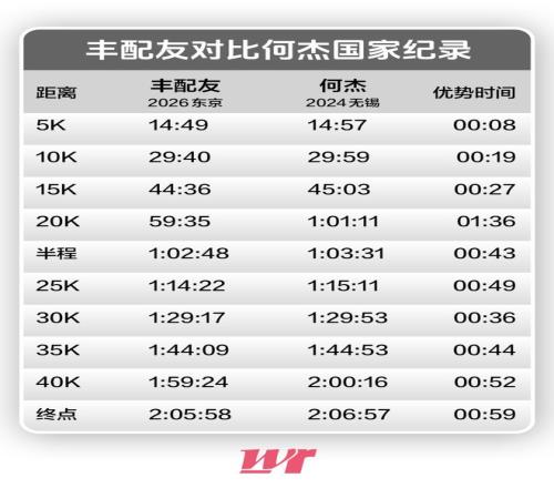大迫杰以2小時05分59秒完賽,雖未能本土奪冠,但仍展現出頂級競技水平。另一名日本選手鈴木健吾以2小時06分09秒完賽。豐配友在完賽后脫口而出“感覺太爽了!”。這個PB不僅讓他2024年瓦倫西亞跑出的2:07:06成為過去,也讓2024年何杰在無錫馬拉松跑出的國家紀錄2:06:57就此封存。從3月1日起,中國馬拉松男子國家紀錄的擁有者從何杰變成了2001年出生的豐配友。雖然喜悅,但豐配友說,這不是自己的終極紀錄,“亞洲紀錄”才是自己的終極目標。