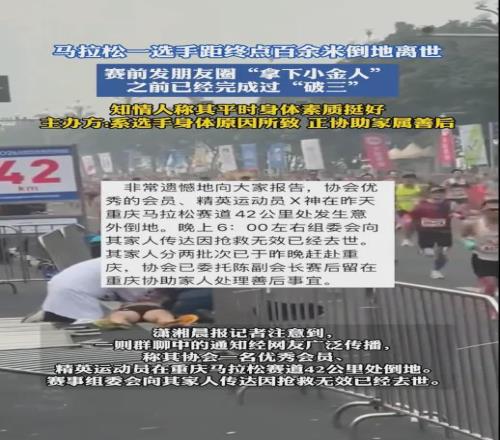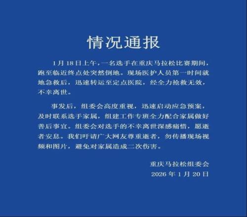 2.《重慶馬拉松組委會通報:一選手賽末倒地離世,已啟動善后》極光新聞2026-01-20