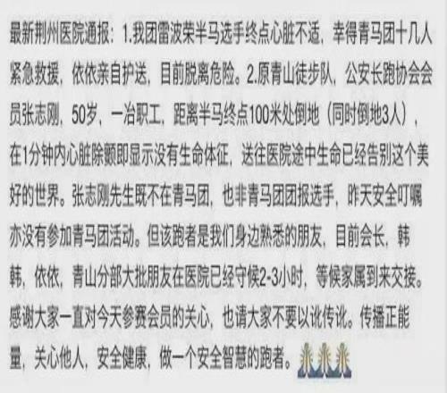 荊州醫院關于荊州國際馬拉松施救情況的通報(圖源@網絡)▼