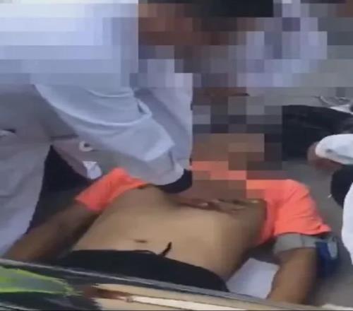 鐘先生被施救的現場(圖源@視頻截圖)▼