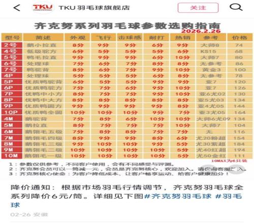 此外,2月24日,斯莊格運動互動旗艦店公告稱決定對全系列羽毛球降價5元-10元/筒。2月26日,齊克努羽毛球旗艦店發(fā)布降價通知,齊克努羽毛球全系列降價6元/筒。