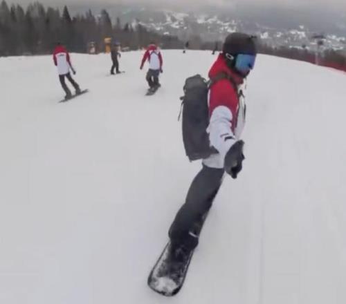 中國(guó)殘奧單板滑雪教練員牛天然給《華夏時(shí)報(bào)》記者發(fā)來的滑雪第一視角視頻顯示,每一名運(yùn)動(dòng)員都背著物資包,里面裝有滑雪的備用物品以及水,補(bǔ)充能量的食物等常用物品,大部分運(yùn)動(dòng)員身著紅色的中國(guó)體育代表團(tuán)服裝,在雪道之上,他們?nèi)缬昔~般靈動(dòng)自如。