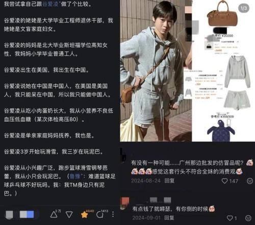 (圖1:網友對比自己與谷愛凌;圖2:全紅嬋買包爭議)