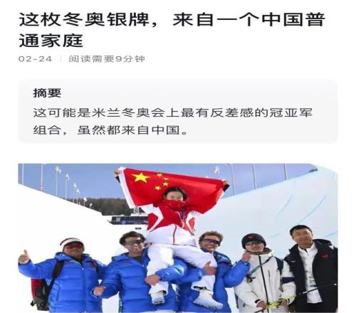(文章《這枚冬奧銀牌,來自一個中國普通家庭》)